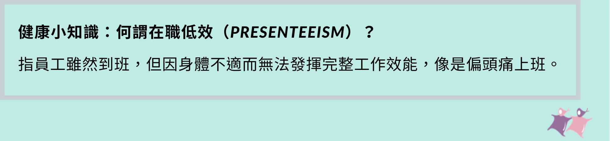 (二)透過「在職低效」與「缺勤」的狀況,評估月經對工作生產力的影響